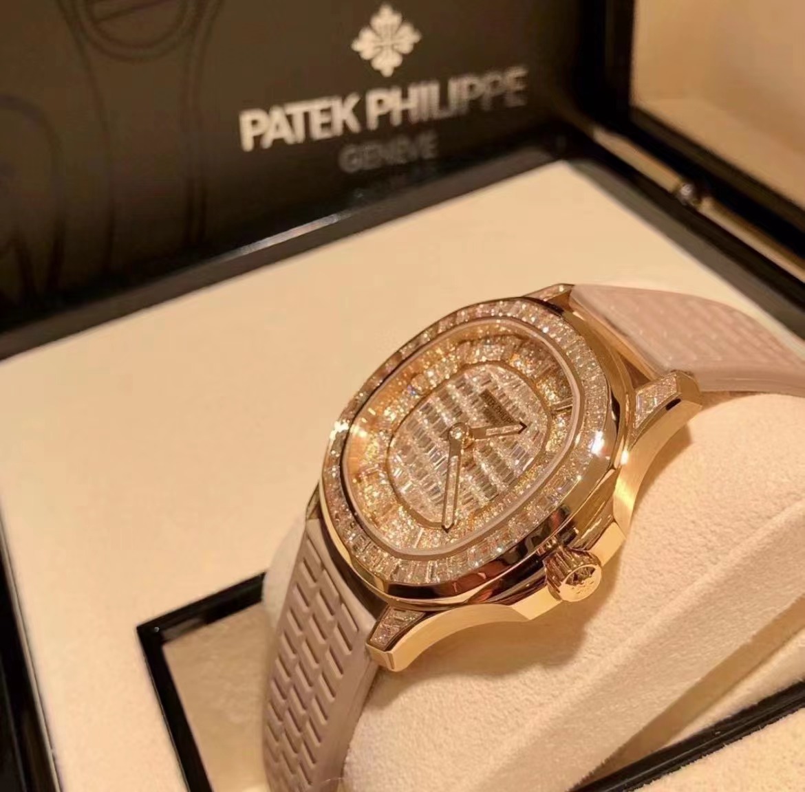 表圈材质:18k玫瑰金,表圈和表耳镶嵌48颗长形钻石(~3.68克拉)