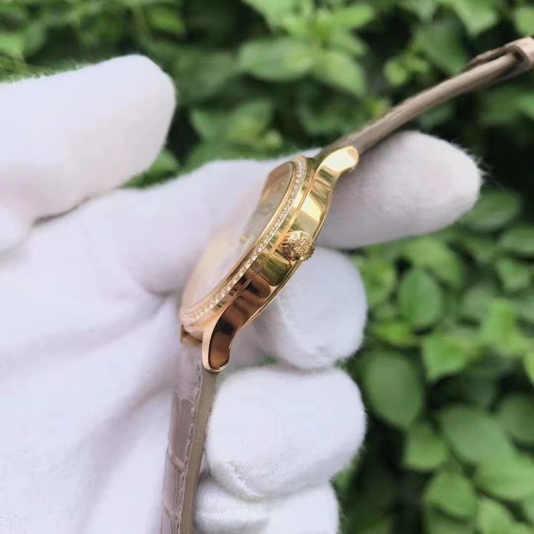 表圈材质:18k玫瑰金镶钻,表圈上镶有68颗钻石0.68克拉