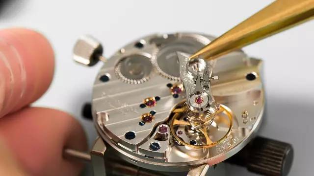 在打磨上,莫勒的3/4夹板采用了大面积经典的格拉苏蒂菱纹,摆轮夹板打造了精美的雕花刻纹,凸轮跳针进行了直纹打磨,而擒纵轮夹板则用了圆纹处理,熟悉德表或者还记得上次发条鱼介绍过朗格历史的朋友,应该很清楚这几项打磨技术的难点所在。可见莫勒在打磨雕刻工艺上也是下了一番功夫的。