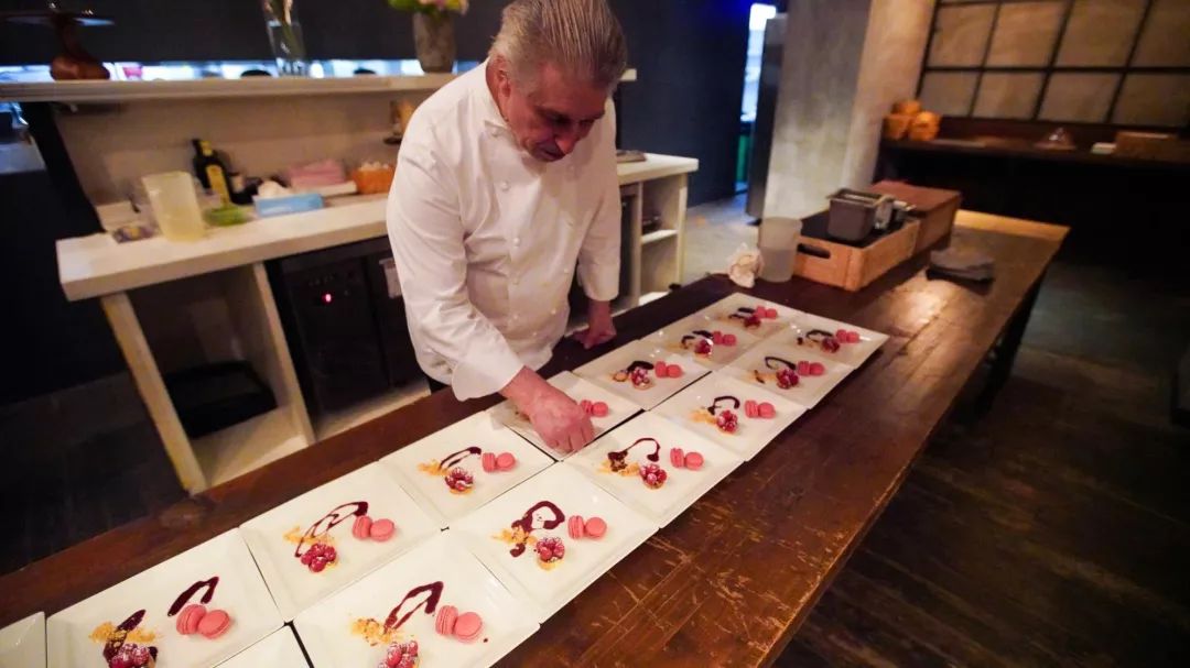 艾本餐厅(URBN Restaurant)位于上海艾本精品酒店一楼,拥有优美的室外常青藤庭院,在休闲轻松的氛围下,为宾客呈献国际美食佳肴、选择繁多的精酿啤酒、特质鸡尾酒和葡萄酒。近日艾本迎来了瑞士顶级酒庄Domaine du Daley的庄主—— Cyril Severin先生,和曾经效力于世界顶级餐厅l'Hotel de Ville的主厨Gerard Cavuscens先生。Gerald主厨和Severin先生带着他们的美食和美酒来到艾本,为尊贵的客人准备了一场美酒配佳肴的饕餮盛宴。本次晚宴的菜品包括:安达卢思冷汤、鳌虾云吞配奶香鸭肝、冰岛鳕鱼柳、神户牛肉……臻选各国顶级食材,糅合成最疯狂的舌尖记忆。